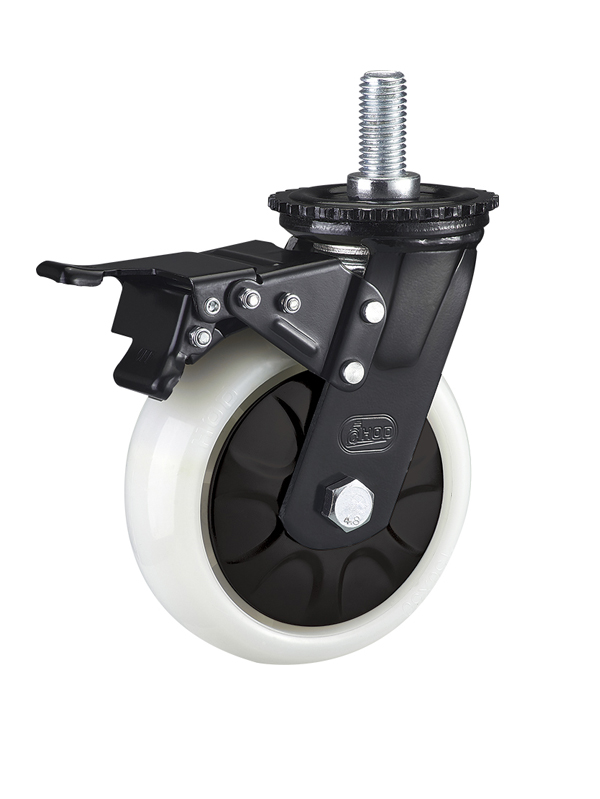 4. 設計:一些超(chāo)重型腳輪設有旋轉支架,可以在不同方向上靈活移動。另外,一些腳輪分為固定型和活動型,分別用於平行方向的直(zhí)線移動或(huò)多方向移(yí)動。