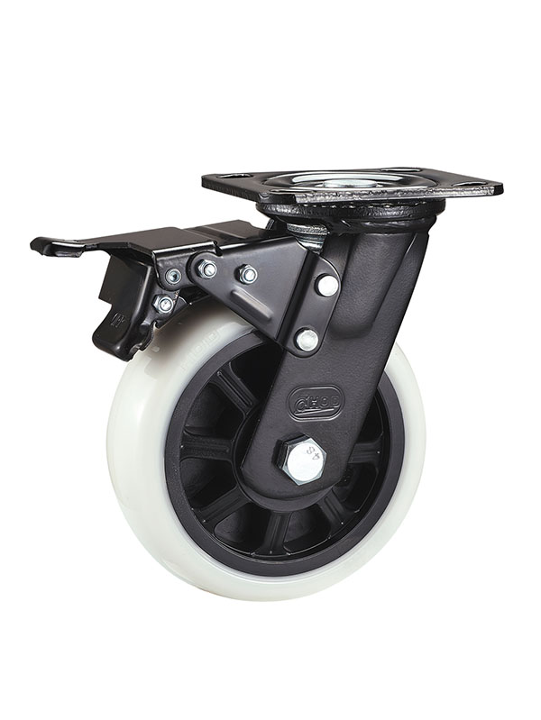 72係列-4寸平底雙刹雙軸承耐磨白色TPE輪(黑漆)
