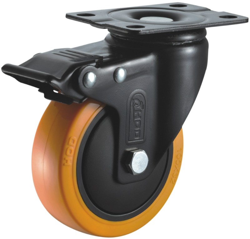 黃色聚氨酯平底萬向腳輪帶刹車
